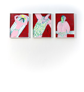 Zwei größere, fortlaufende Serien, sind hierbei besonders bemerkenswert. Zum einen kleinformatige, minimalistische Werke mit wenigen Motiven auf weißem Grund. Es sind Elektroleitungen, Parkbänke oder Blumenkübel, Plastikstühle oder Plüschtiere an einer Wäscheleine – scheinbar banale oder skurrile Dinge. Mit bunter Farbigkeit nimmt die Künstlerin denen ein Stück der Realität und damit auch der Banalität weg und verleiht ihnen eine seltsame Poesie. Eine weitere, größere, fortlaufende Serie sind bunte, expressiv wirkende Stadtlandschaften in Rosa, Violett, Türkis und Neongelb. Palmen, Sonnenschirme, Swimmingpools, Tennis- und Fußballplätze aus München und Umgebung wirken hier wie Urlaubsbilder aus Kalifornien. Ihre Stimmung und Farbgebung sind sowohl mit Edward Hopper als auch mit David Hockney vergleichbar, beide findet die Künstlerin inspirierend. Die Atmosphäre dieser Bilder ist irgendwo zwischen Optimismus und Melancholie zu verorten: eine menschenleere, farbintensive Alltagspoesie."